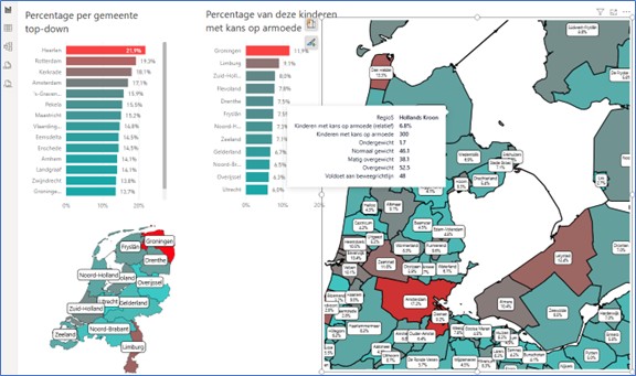 Om die stap te vergemakkelijken ontwikkelde Taco de Jong, beleidsadviseur en BI-specialist bij Wyzer, een kaartvisualisatie binnen Power BI. Met die visualisatie kunnen beleidsmakers verschillende soorten publieke data overzichtelijk tonen op de kaart van Nederland. “Daarmee wordt data zichtbaar en zegt het zoveel meer”, vertelt Taco. De visual bevat ingebouwde kaarten met gemeenten, provincies, GGD-regio’s en veiligheidsregio’s, zodat data direct op het gewenste schaalniveau zichtbaar wordt. “Het scheelt ook enorm veel tijd. Geen gedoe met het importeren van shapefiles of het zoeken naar de juiste grenzen, het werkt direct binnen Power BI.”